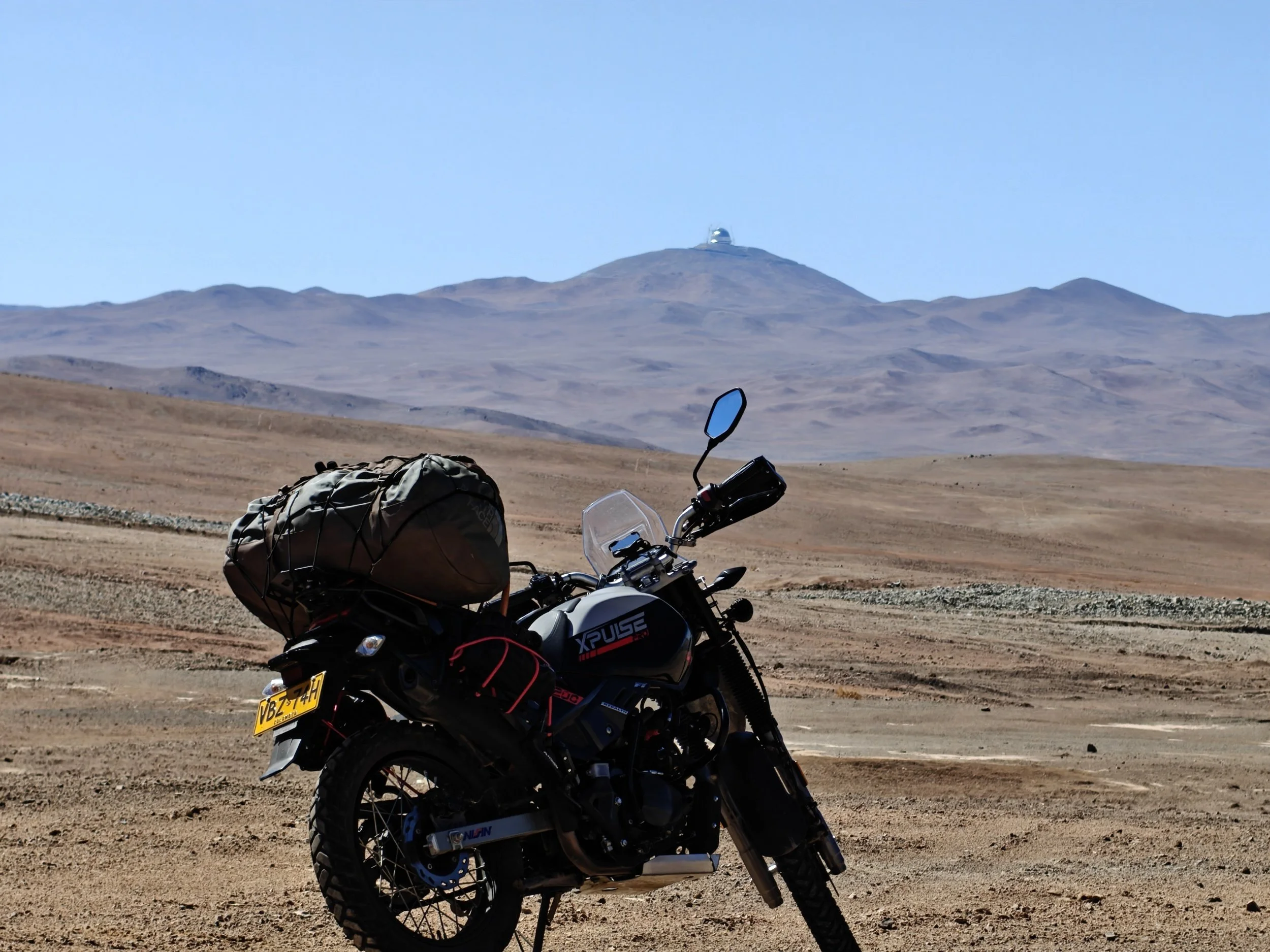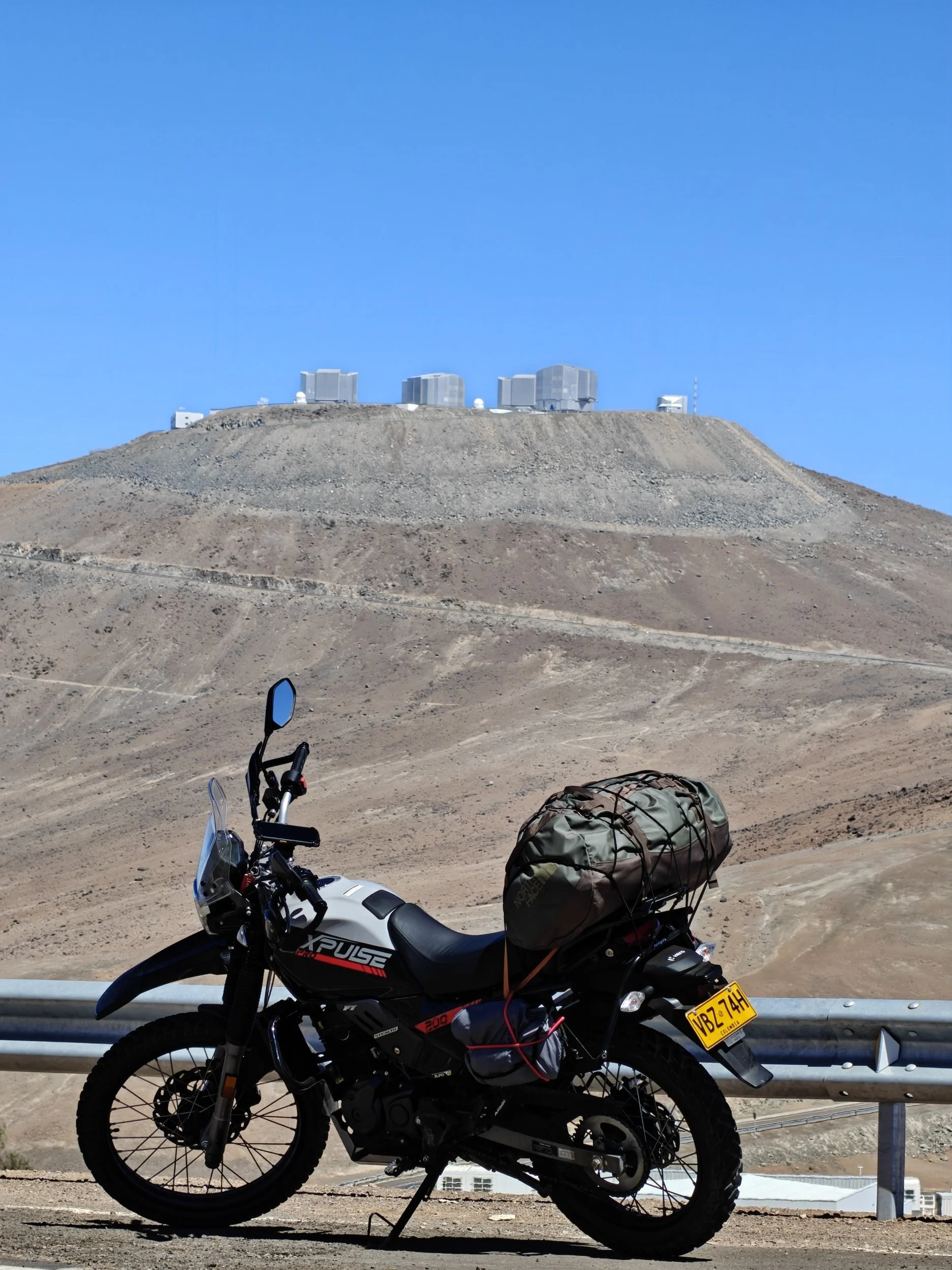 Det ekstremt tørre klimaet gjorde stedet perfekt for romteleskoper, da det ikke fantes skyer. Midt ute i ingenmannsland står utallige futuristiske observatorier og stirrer mot himmelen. VLT, eller Very Large Telescope, som det oppfinnsomt kaltes, var del av Paranal observatoriet og tidligere det største i verden. Det nye, langt større teleskopet, ELT, eller Extremely Large Telescope, som det selvfølgelig heter, var under oppbygging på et 3000 meter høyt fjell, hvor de hadde kuttet av hele toppen og bygget den store kuppelen. ELT hadde et speil på over 39 meter i diameter, og bygget var over 80 meter bredt og høyt. Kuppelen var komplett og godt synlig fra veien. Jeg håpet å kunne snike meg inn på området for å få sett litt nærmere på dette unike bygget, men det lot seg ikke gjøre. Området var avsperret og kontrollert av vakter. Så det ble med å beundre dem fra avstand, og ta fatt på veien videre sørover gjennom det uendelige, ufattelig øde landskapet.