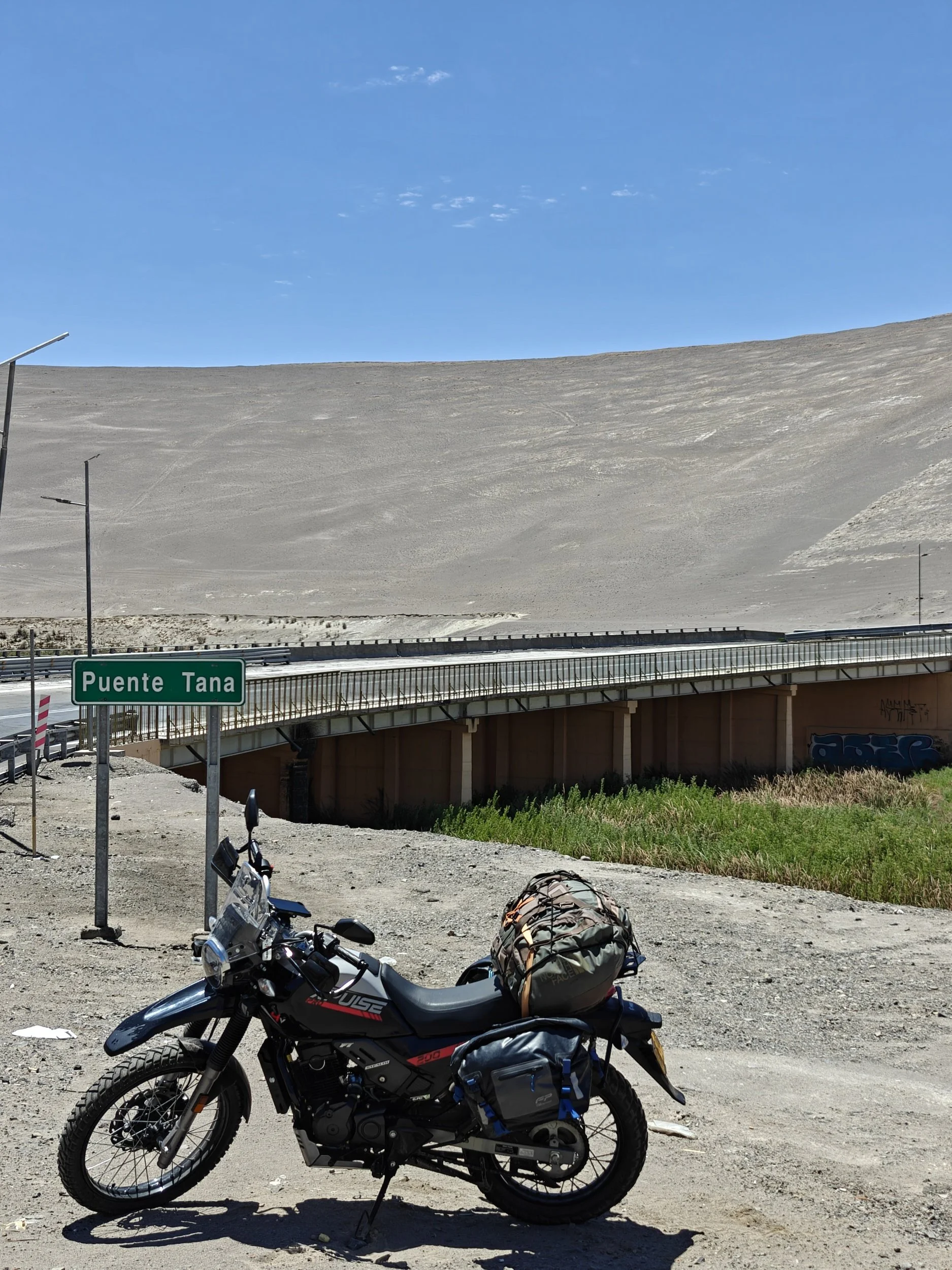 Det ble fort litt løse tøyler på forstanden og man får litt vaklende grep på virkeligheten når man kjører endeløse mil gjennom de mest livløse og øde områdene i verden. Jeg var derfor litt undrende om om jeg hadde hallusinert da jeg kjørte over Tana Bru i en dal med en liten elv fra Andesfjellene, midt ute i ørkenen. Bare for sikkerhets skyld måtte jeg snu og kjøre tilbake for å sjekke skiltet igjen. Og jada, Puente Tana, som betydde Tana Bru, lå her i ørkenen i Nord-Chile, så langt fra sivilisasjonen at en skulle tro en var i Tana Bru…