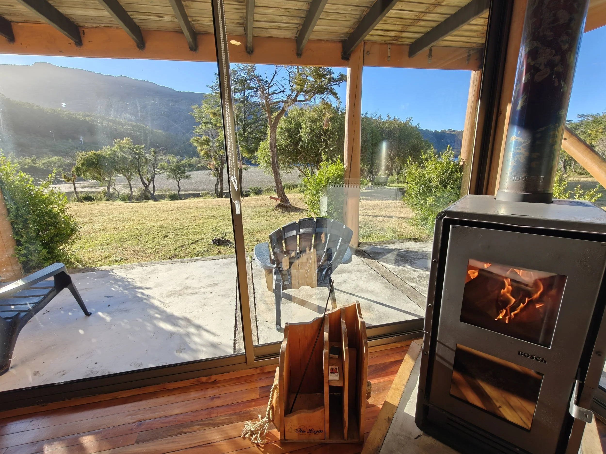 Hytten jeg overnattet i var aldeles utmerket, med vedovn og panoramautsikt til vannet nedenfor. Hester og gjess vandret målløst rundt på eiendommen. I restauranten var det ypperlig mat med langtidsstekt Patagonia lam og godt, kaldt øl. Utover kvelden fyrte jeg i ovnen til hytta oppnådde badstu temperatur, og leste nok en bok om andre verdenskrig, som man jo gjør når man befinner seg midt ute blant fjellene i Patagonia.