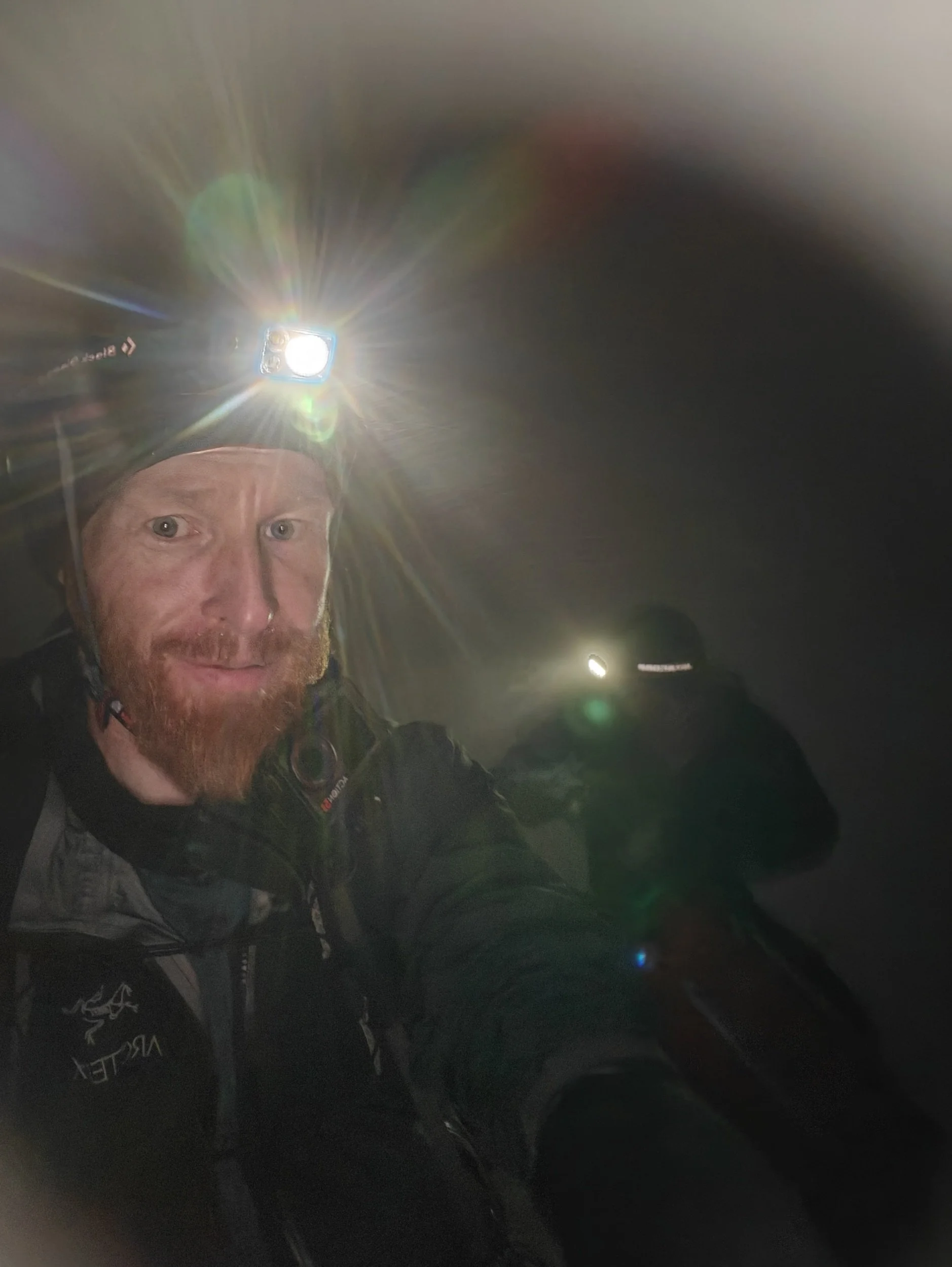 Første delen var opp en fjellknaus, på kanten av et stup. Det var mørkt og lyset fra hodelykten hadde begrenset rekkevidde, så det var ikke godt å si hvor langt det var ned. Men trolig var det en fordel å ikke falle utenfor.
