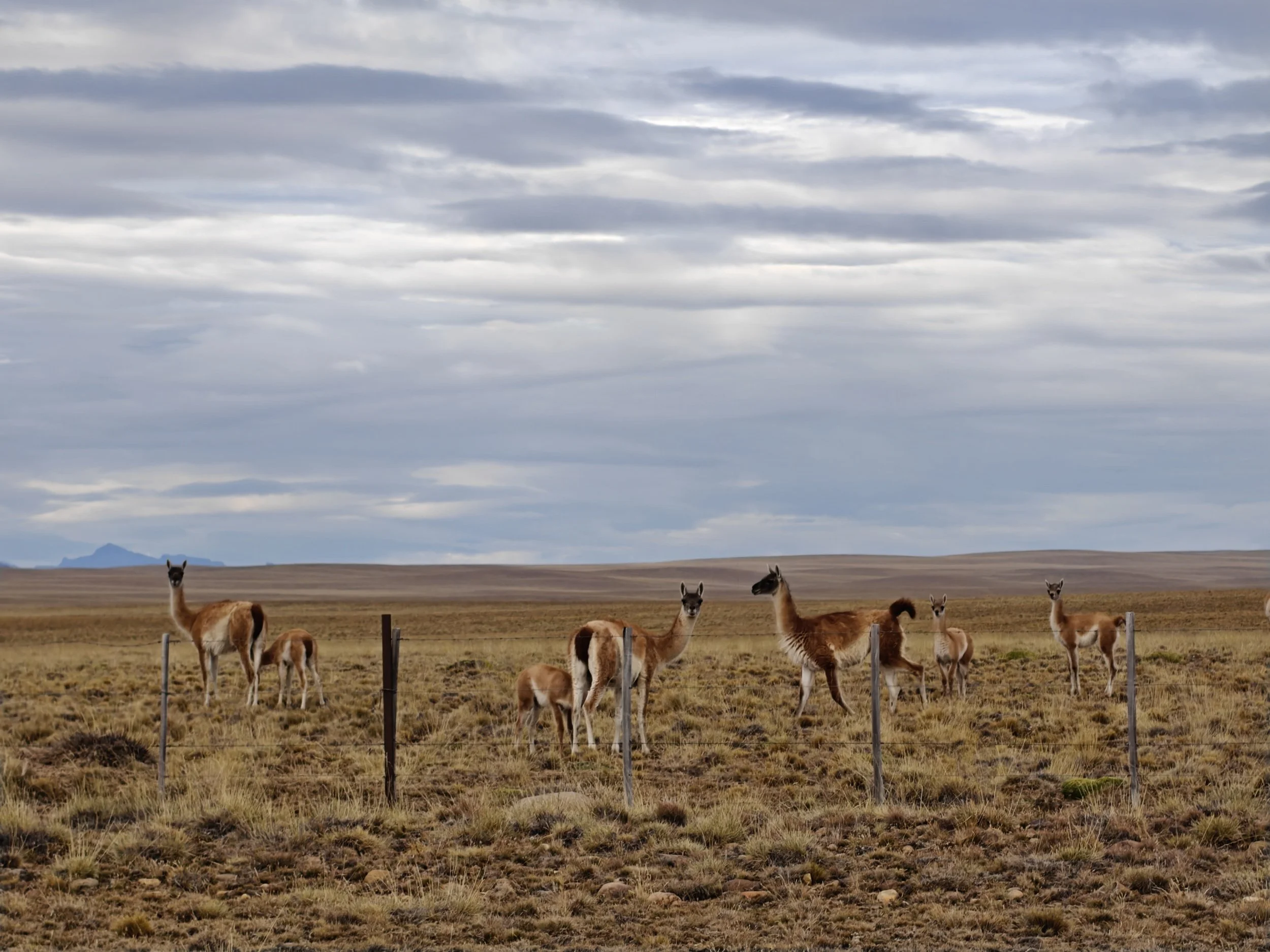 Guanacoer, en slektning av Lama, sto langs veien og inspiserte trafikken. Store flokker gikk og tuslet på marken, og det var alltid en og annen som sto i veikanten og fulgte med på hvilken type motorsykkel som kom forbi. Så lenge de bare sto der var det greit, men de hadde en lei tendens til å bestemme seg for å krysse veien akkurat når en bil eller sykkel kom kjørende. Det lå ett og annet kadaver langs veien som vitnet om varierende overholdes av trafikkreglene fra deres side.